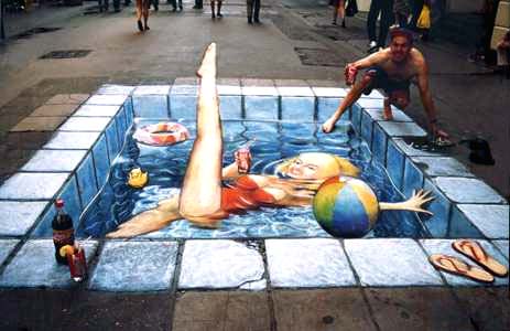 Julian Beever is an English artist who's famous for his art on the pavement of England, France, Germany, US, Australia and Belgium. Note that all images are completely flat!